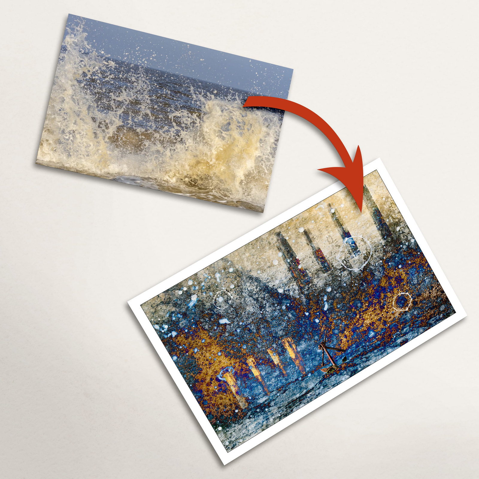 This isn’t a tutorial. It’s a glimpse into the way I think: how I move from realism to metaphor, from documentation to dream. The final artwork retains the energy of the original wave, but refracts it through colour, texture, and emotional ambiguity. It’s a piece that invites reflection: on the sea, on memory, and on the stories we project onto both.