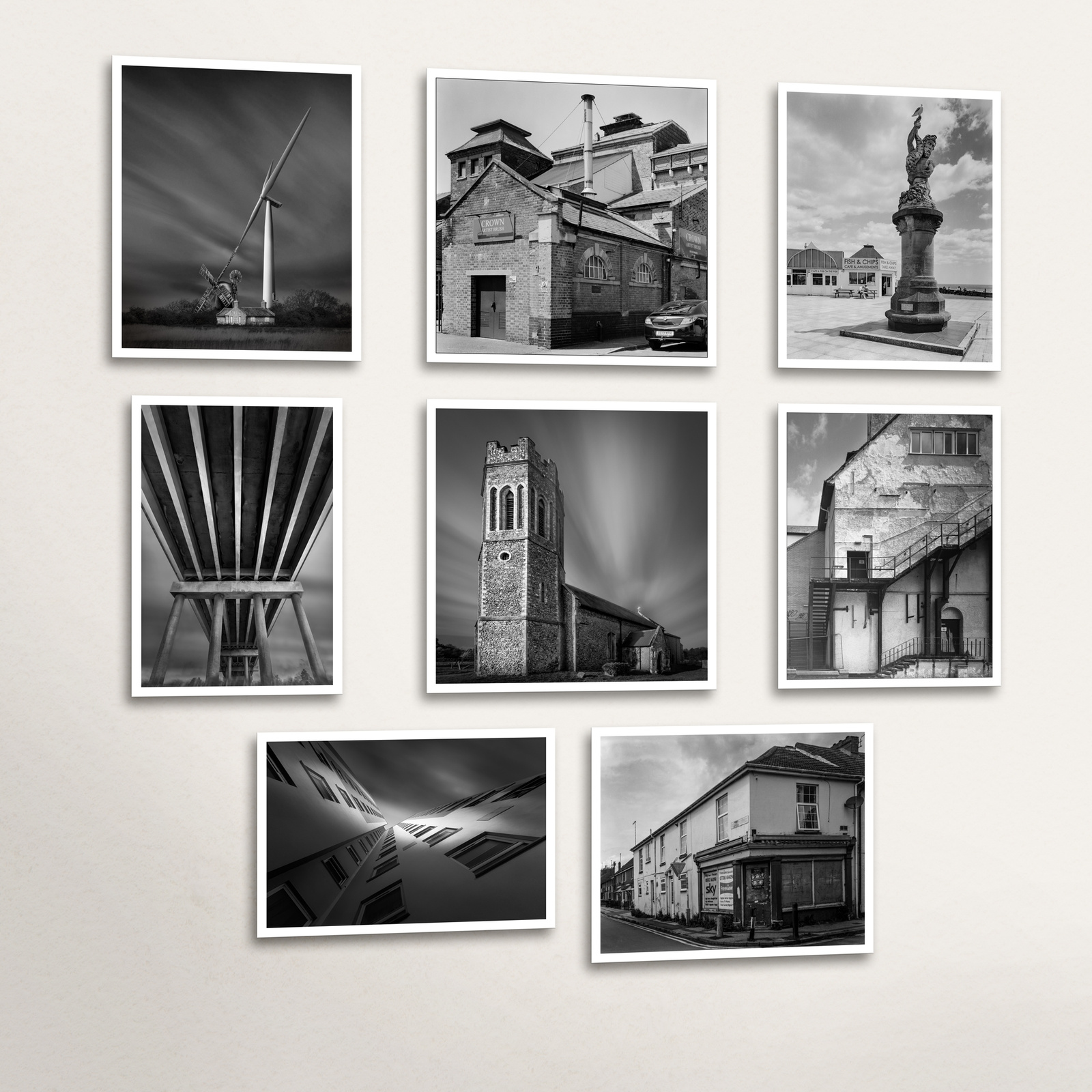 Architecture is a curated collection of monochrome artworks that celebrate the beauty, drama, and quiet poetry of the built environment. Each piece stands alone as a distinct exploration of form, light, and perspective — from the soaring lines of modern structures to the weathered textures of heritage buildings. The series invites viewers to see architecture not just as shelter or utility, but as a canvas for human ambition, history, and imagination. Whether capturing the precision of engineered symmetry, the patina of time, or the interplay between myth and everyday life, these works transform familiar spaces into moments of contemplation.