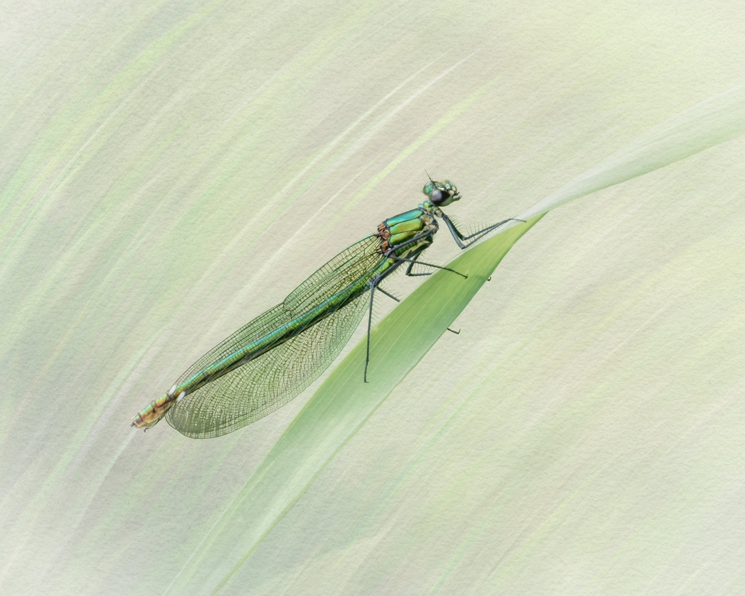 A celebration of quiet encounters, “Wingèd Beasties” gathers close-up nature artworks that treat damselflies and dragonflies as luminous subjects rather than mere specimens. Each piece invites an unhurried look: thin lines, glassy wings, and living colour, turning a moment of stillness into a lasting presence on the wall.