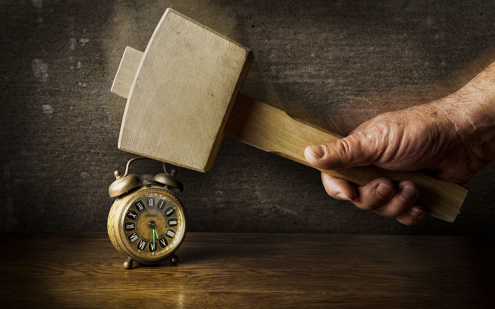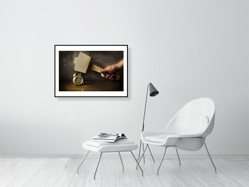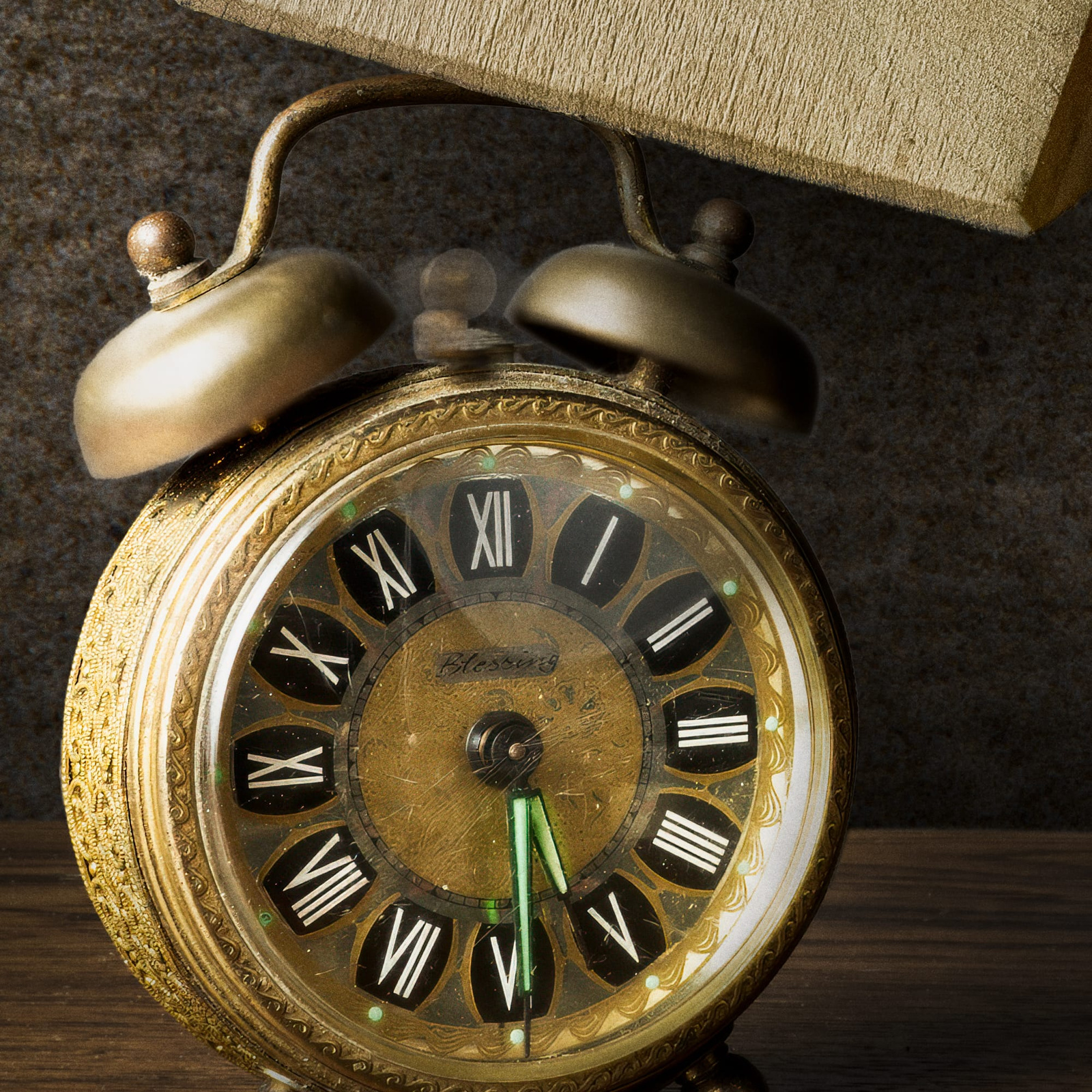 This artwork captures the tension between time and human resistance to it. The poised mallet above the alarm clock suggests both frustration and defiance, as though the subject is ready to shatter the tyranny of schedules. The golden clock, with its classical Roman numerals, evokes tradition and inevitability, while the blurred mallet introduces urgency and rebellion. The dark, textured backdrop heightens the sense of drama, making the piece a meditation on the fragile balance between order and chaos in daily life. It is not simply about waking up, but about the human struggle with time itself, and the desire to reclaim autonomy from its relentless march.